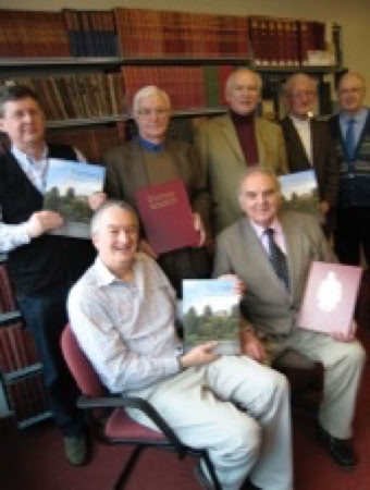 Members of the Project Group with copies of the book; (front) Ian Burn, Miles Henry; (back) James Wilson, Charles Cullimore, Hubert Schaafsma, Ian Scales and Bishop Henry Richmond